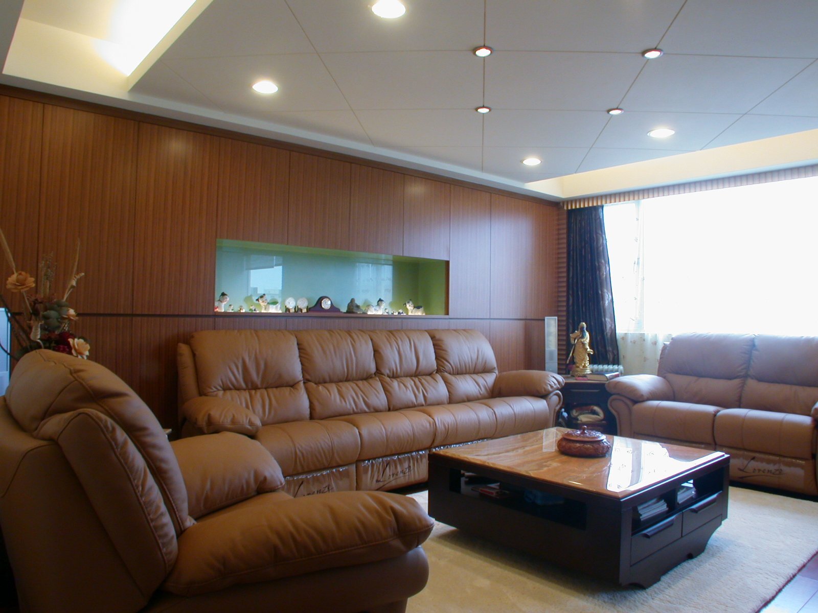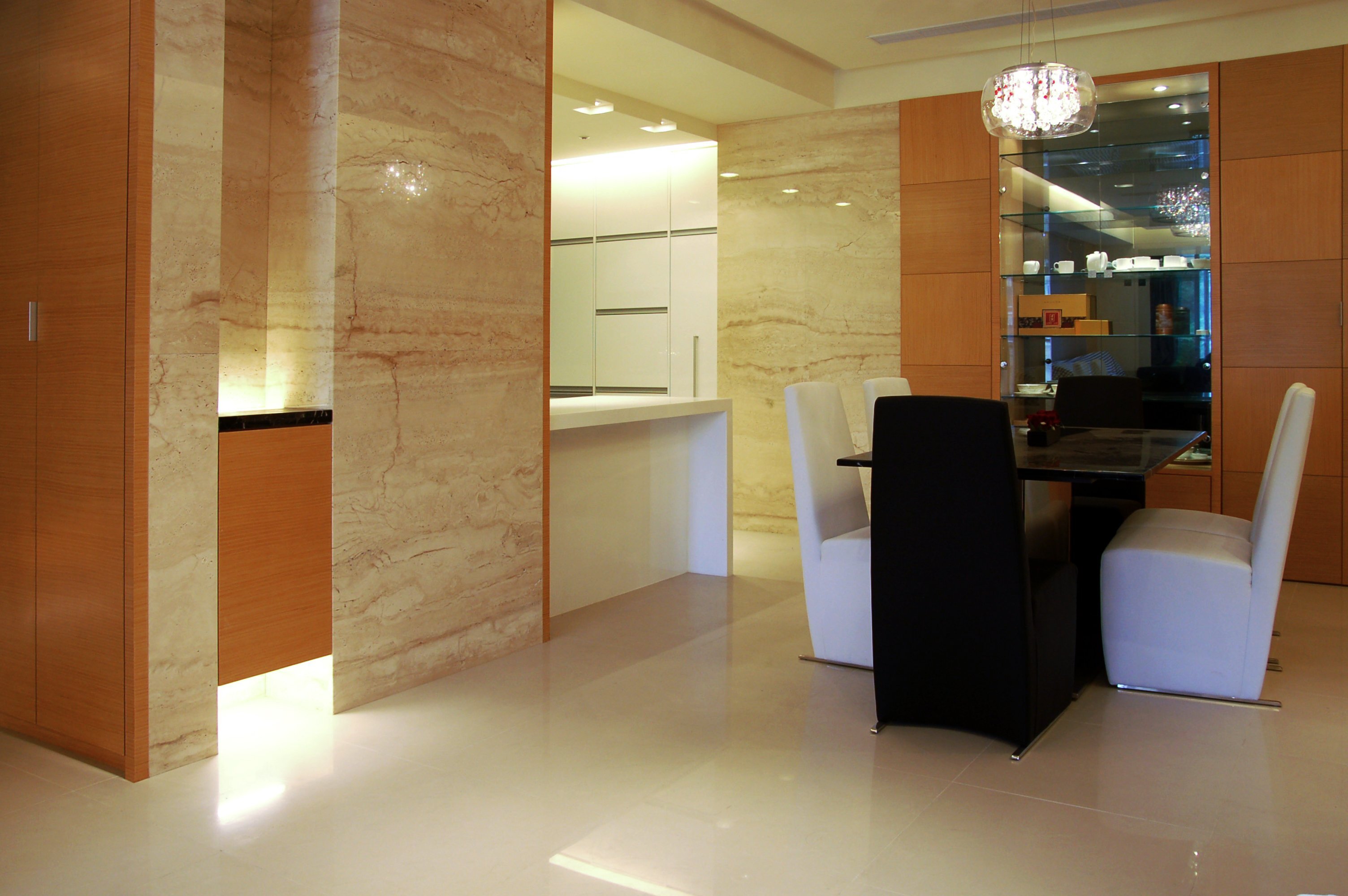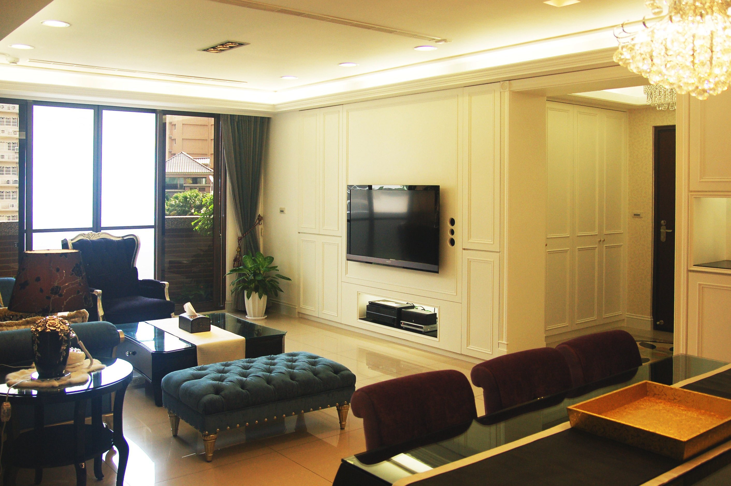 對稱線條、米白牆面與皮革木質家具,營造穩重又不過度華麗的居家風格。