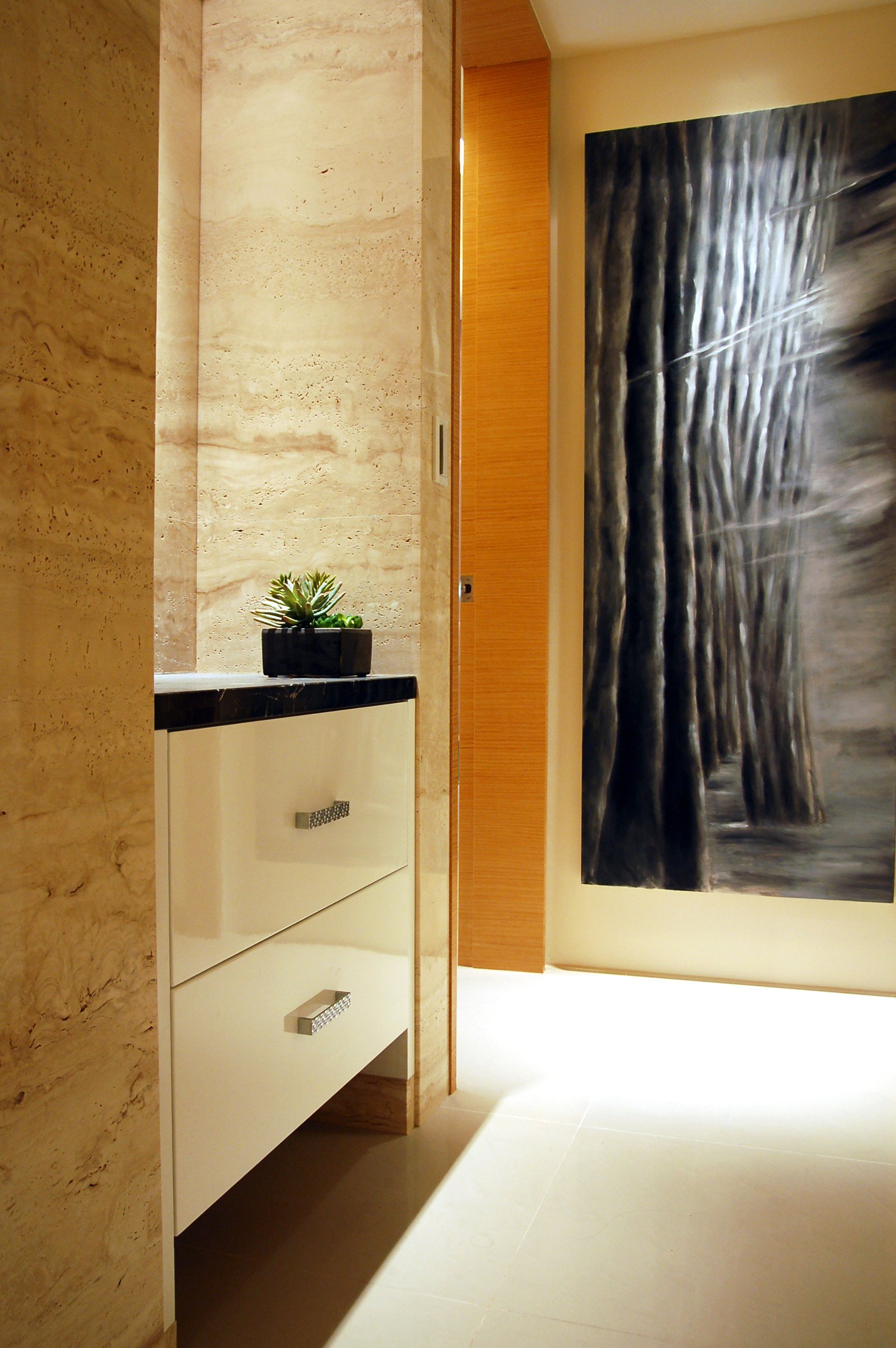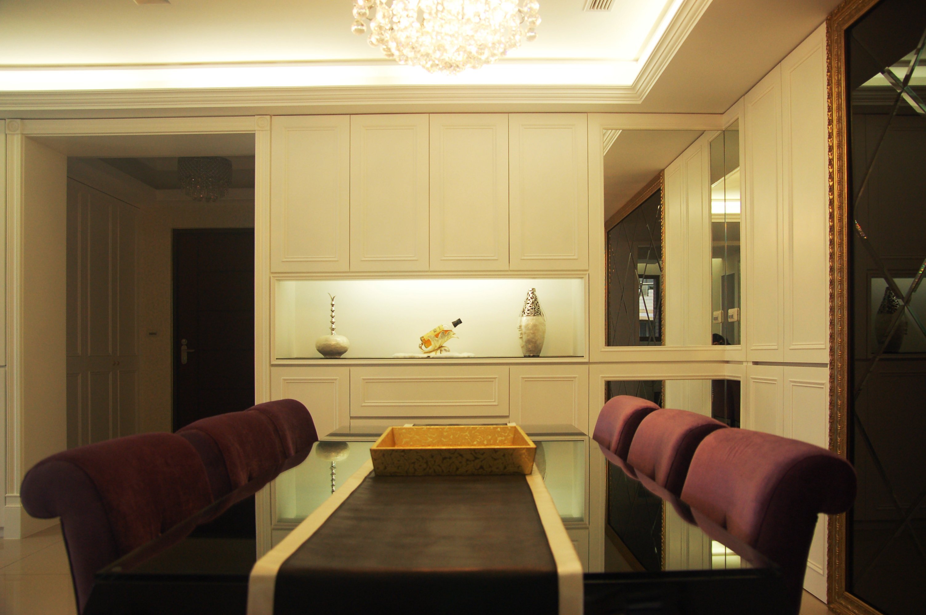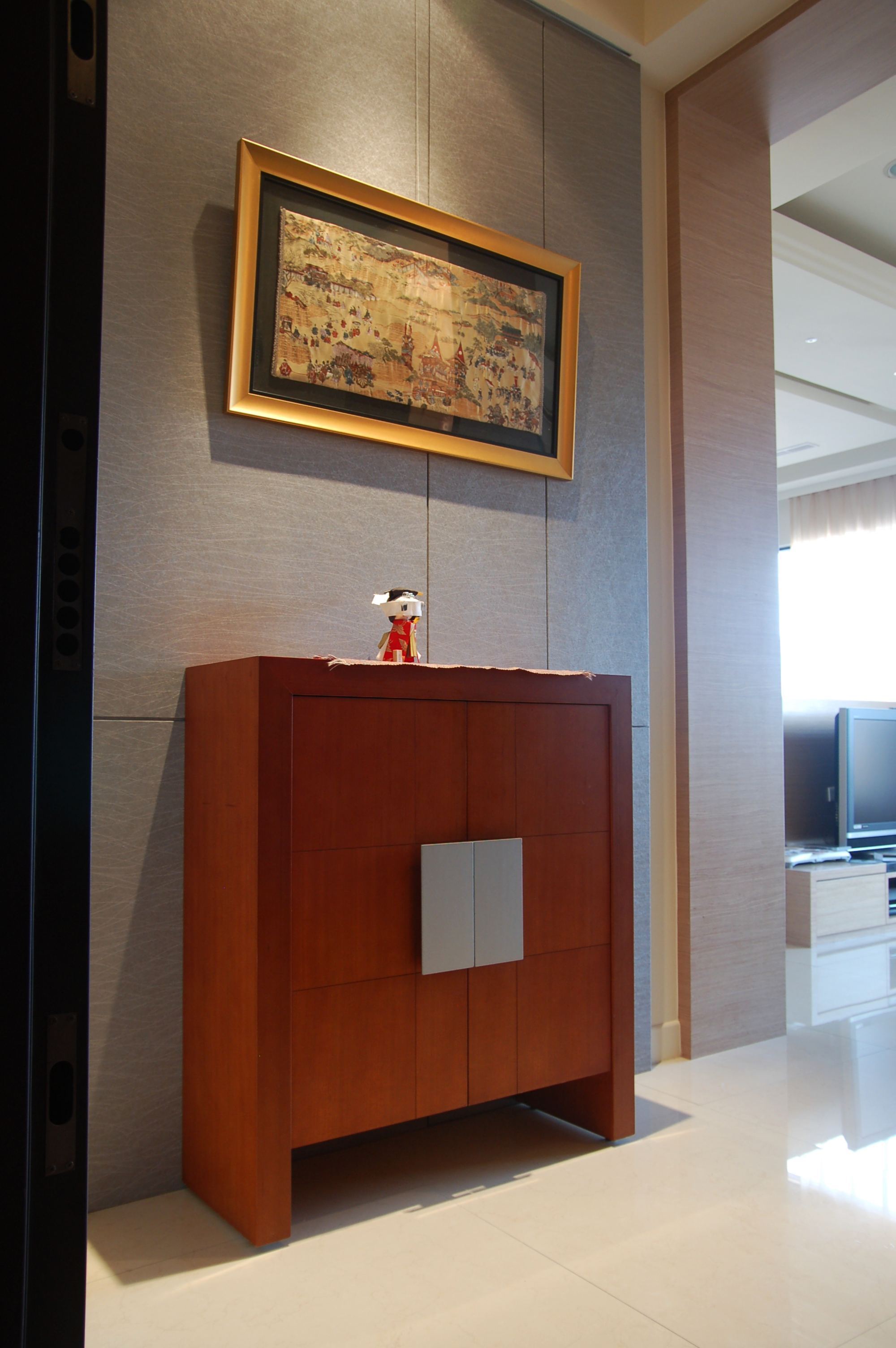 對稱線條、米白牆面與皮革木質家具,營造穩重又不過度華麗的居家風格。