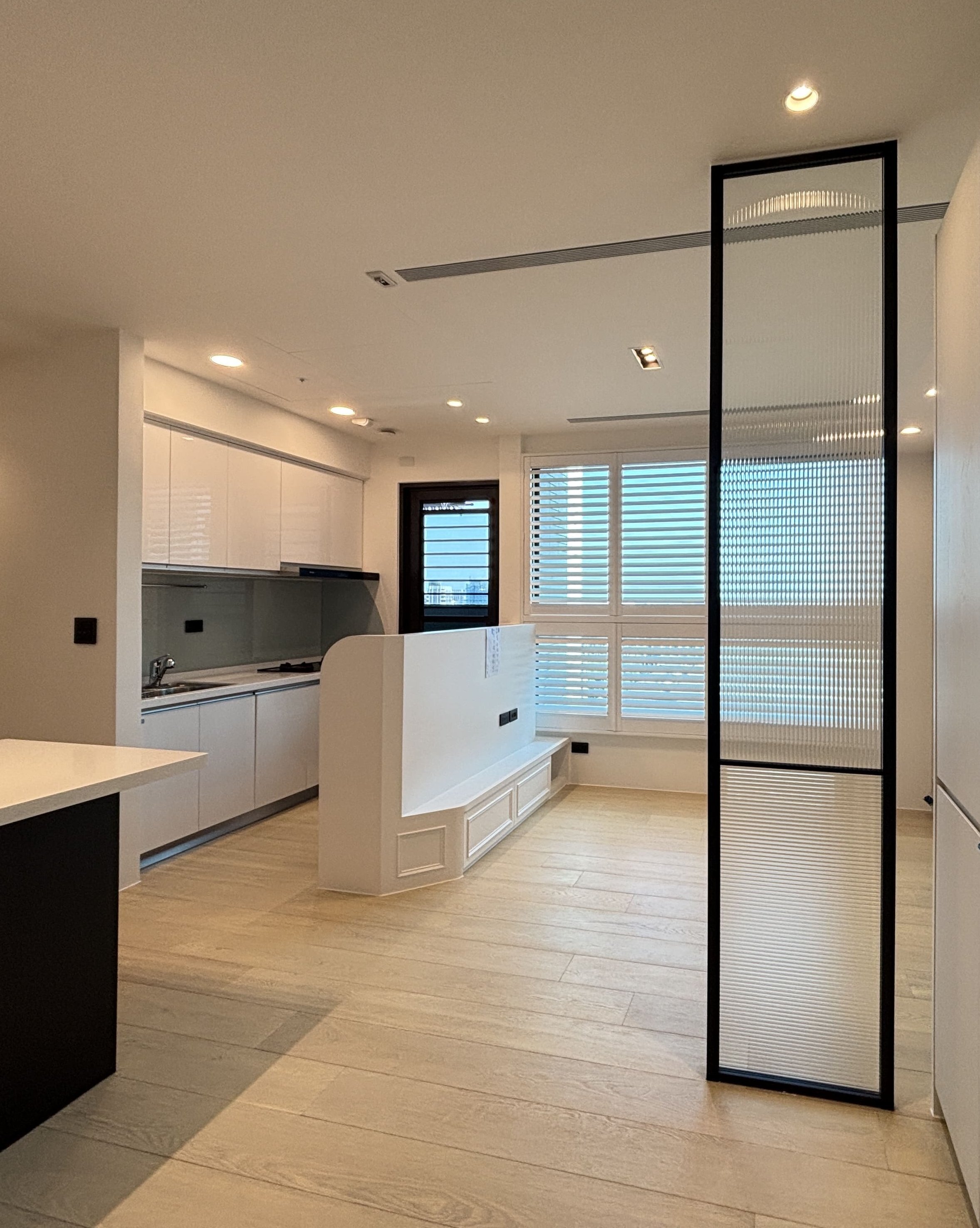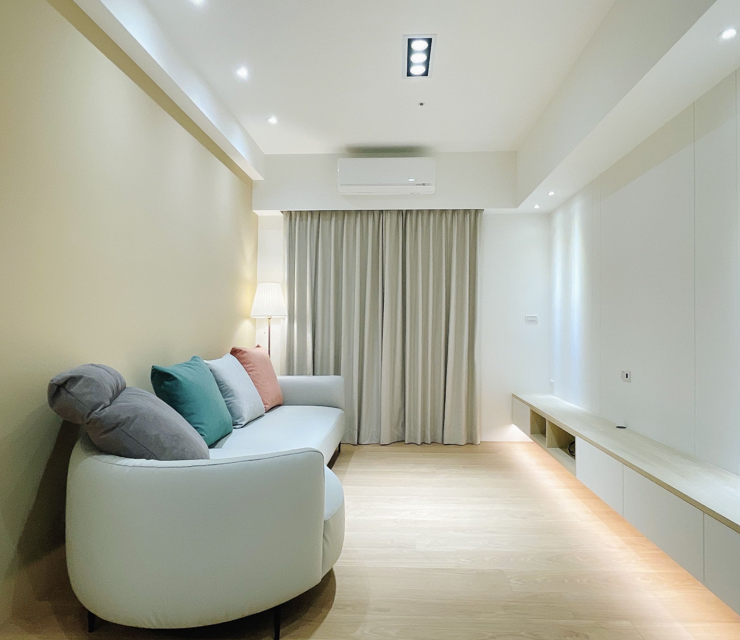 純白牆面、簡潔線條與低彩度軟裝,呈現高質感卻不浮誇的生活美學。